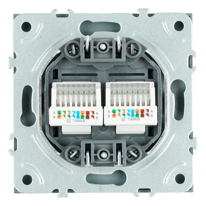 Розетка STEKKER RST00-5111-09 (CAT.5E, срок службы 25 лет) на 2 гнездо, -, -. Материал: поликарбонат, латунь, сталь, цвет антрацит, soft touch, размер 71*71*30мм. Номинальное напряжение -, номинальный ток 1A, диапазон ра...