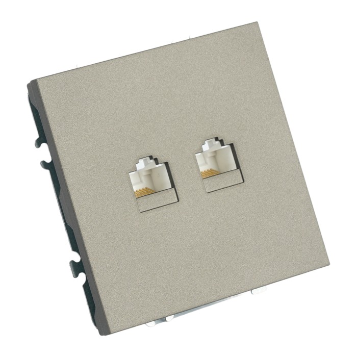 Розетка компьютерная 2-местная RJ-45 (механизм), STEKKER, серия Эмили, RST00-5111-09, антрацит, soft touch