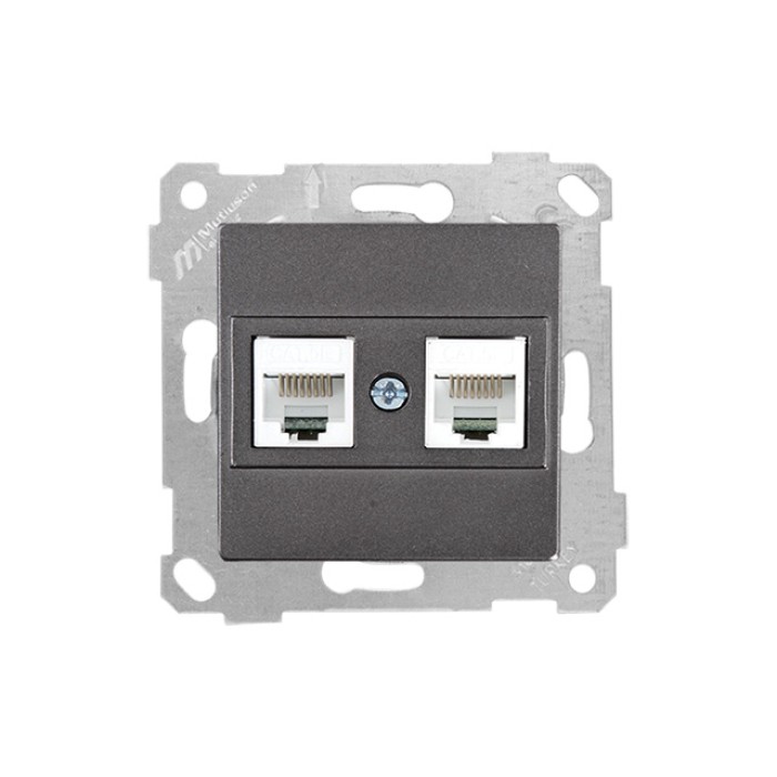 Розетка компьютерная 2xRJ45 (Cat5e, скрытая, без рамки) дымчатая, RITA, MUTLUSAN