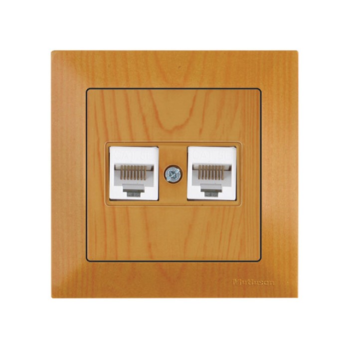 Розетка компьютерная 2xRJ45 (Cat5e, скрытая) дуб, DARIA, MUTLUSAN