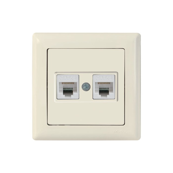 Розетка компьютерная 2xRJ45 (Cat5e, скрытая) кремовая, DARIA, MUTLUSAN