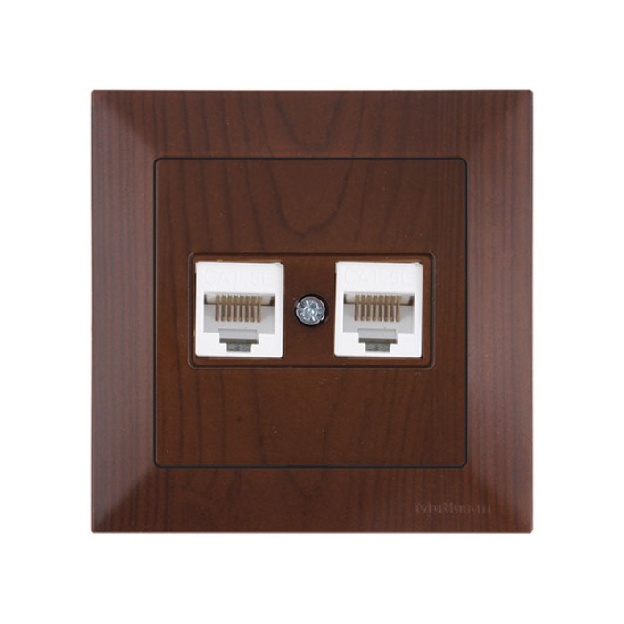 Розетка компьютерная 2xRJ45 (Cat5e, скрытая) орех, DARIA, MUTLUSAN
