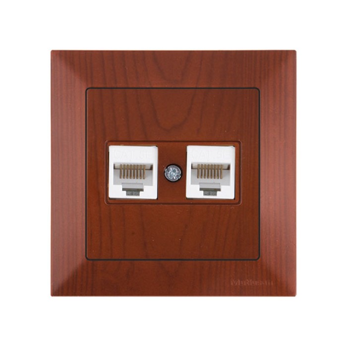 Розетка компьютерная 2xRJ45 (Cat5e, скрытая) вишня, DARIA, MUTLUSAN