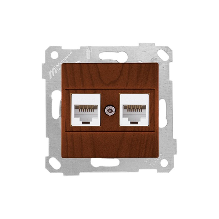 Розетка компьютерная 2xRJ45 (Cat6, скрытая, без рамки) орех, RITA, MUTLUSAN