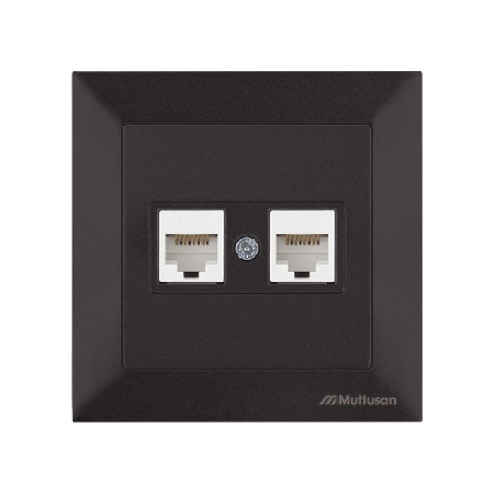 Розетка компьютерная 2xRJ45 (Cat6, скрытая) черная, DARIA, MUTLUSAN