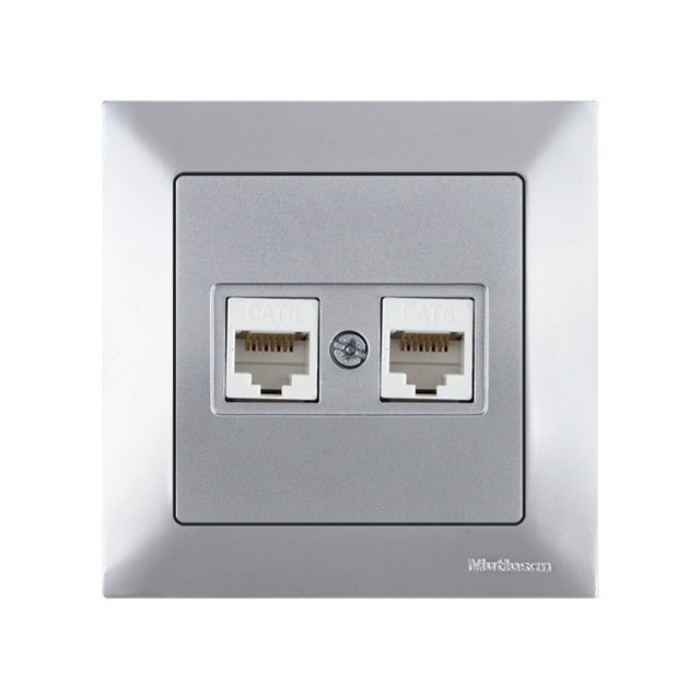 Розетка компьютерная 2xRJ45 (Cat6, скрытая) серебро, DARIA, MUTLUSAN