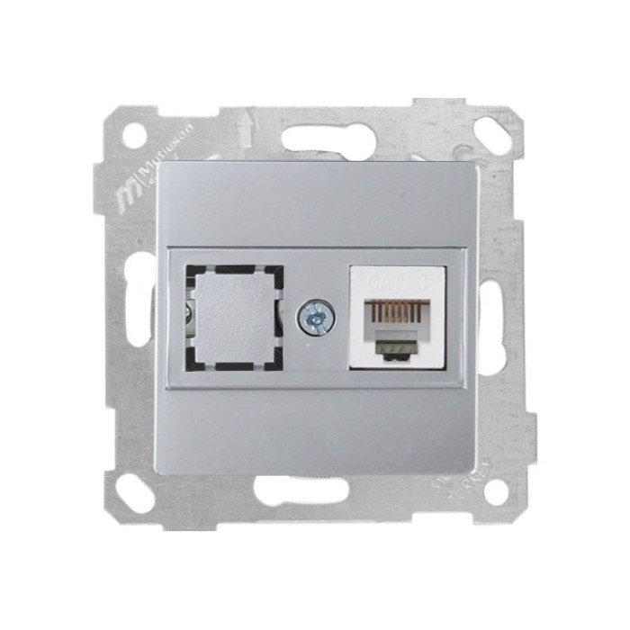 Розетка телефонная 1хRJ12 (скрытая, без рамки) серебро, RITA, MUTLUSAN