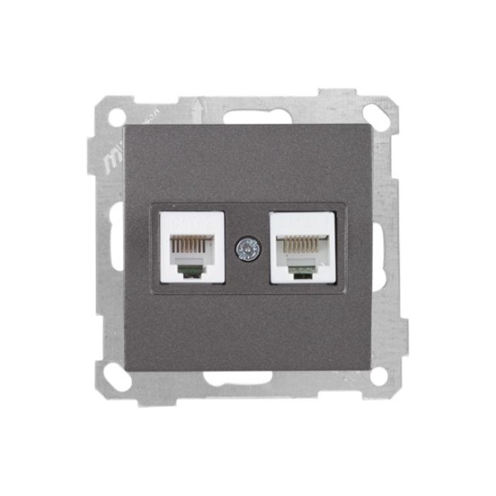 Розетка телефонная + компьютерная (RJ12+Cat5e) дымчатая, ELITRA, MUTLUSAN