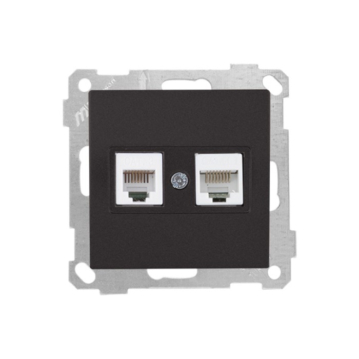 Розетка телефонная + компьютерная (RJ12+Cat5e, скрытая, без рамки) черная, DARIA, MUTLUSAN