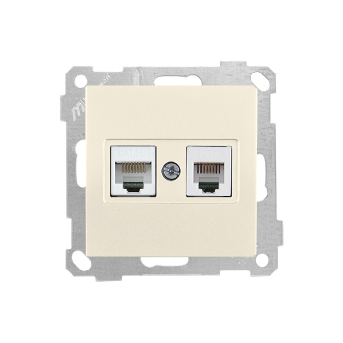 Розетка телефонная + компьютерная (RJ12+Cat5e, скрытая, без рамки) кремовая, DARIA, MUTLUSAN