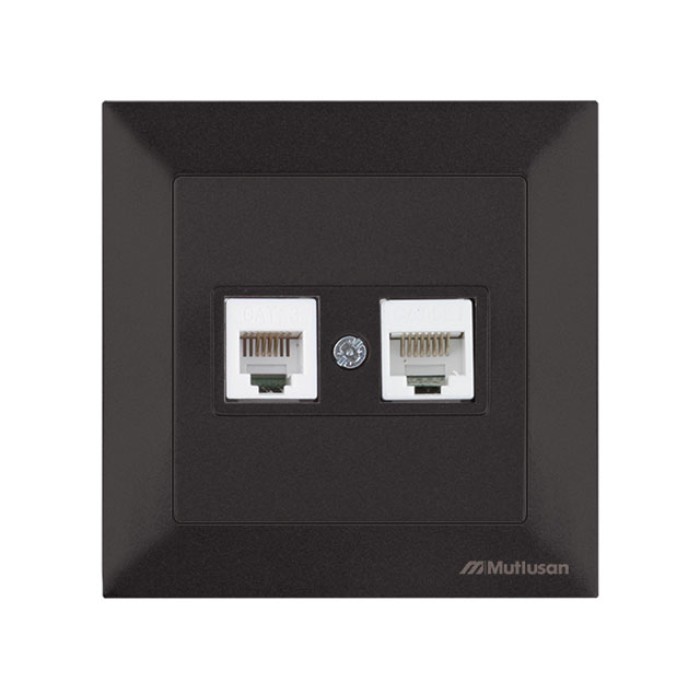 Розетка телефонная + компьютерная (RJ12+Cat5e, скрытая) черная, DARIA, MUTLUSAN