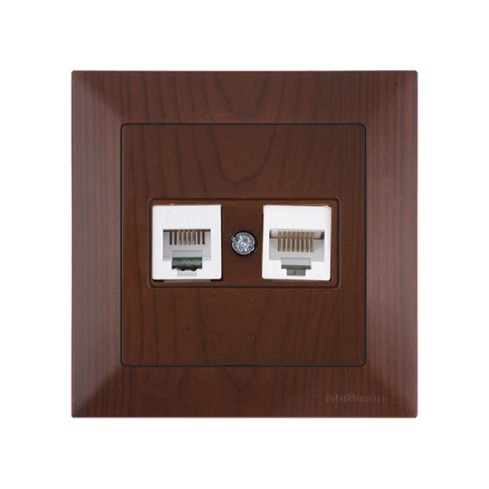 Розетка телефонная + компьютерная (RJ12+Cat5e, скрытая) орех, DARIA, MUTLUSAN