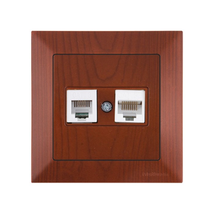 Розетка телефонная + компьютерная (RJ12+Cat5e, скрытая) вишня, DARIA, MUTLUSAN