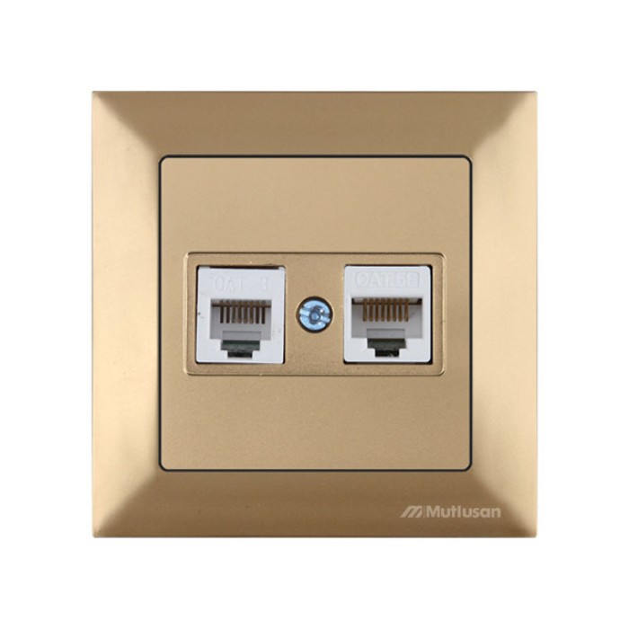 Розетка телефонная + компьютерная (RJ12+Cat5e, скрытая) золото, DARIA, MUTLUSAN
