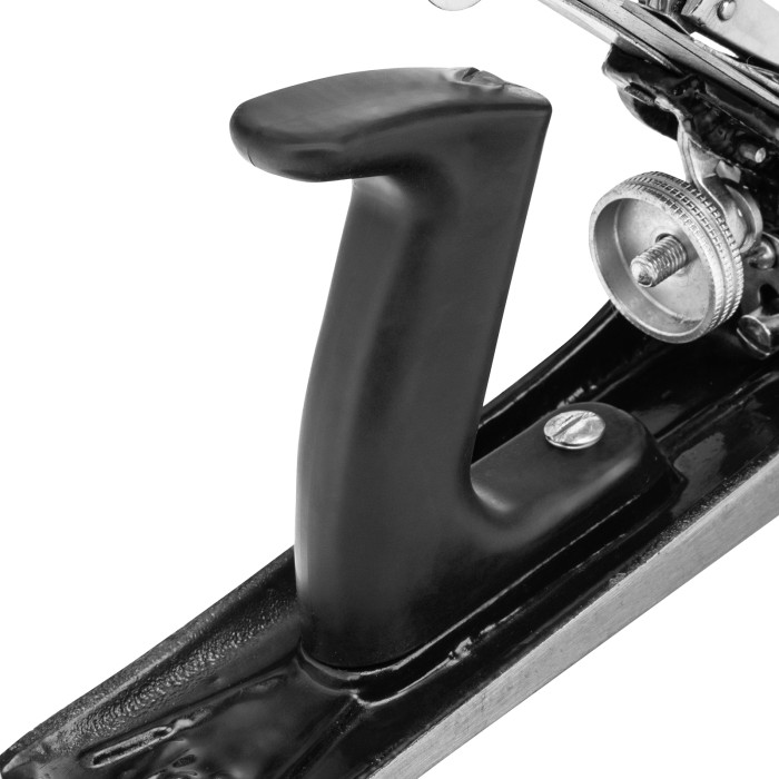 Металлический рубанок Sparta 210805 с подошвой размером 355 х 60 мм предназначен для строгания заготовок из древесины. Плоская подошва обеспечивает высокое качество обработки. Заточенный под оптимальным углом нож эффективно снимает верхний слой материала. Стружколом способствует отведению стружки и сохранению скорости работы. Рубанок пригодится в столярной мастерской, дома или на даче.ПреимуществаВысокое качество выполняемых работ — механизм автоматической центровки позволяет точно позиционировать нож.Прочность — чугунная колодка устойчива к механическим повреждениям.Стабильно высокая производительность — нож из быстрорежущей стали 65Mn не деформируется при повышенных нагрузках.Износостойкость — закаленное лезвие твердостью 50-60 HRC долго держит заточку.