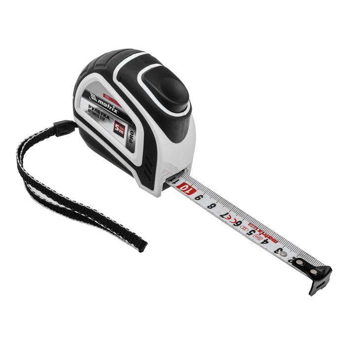 Рулетка Matrix PRO Autostop 32551 с полотном длиной 5 м и шириной 19 мм, в двухкомпонентном корпусе, с автоматической фиксацией ленты, используется для измерения объектов и расстояний. Корпус изготовлен из ударопрочного ...