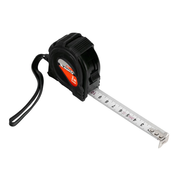 Рулетка Matrix Black 31013 с измерительным полотном длиной 3 м и шириной 16 мм, в обрезиненном корпусе, будет полезна как строителю, так и домашнему мастеру. Используется для определения размеров и расстояний, имеет цену деления 1 мм и класс точности 2. Корпус инструмента защищен резиновым кожухом, что уменьшает риск поломки в результате случайного падения или удара. Зацеп надежно закреплен на ленте тремя заклепками, поэтому он не отвалится даже после длительного использования.ПреимуществаУстойчивость к повреждениям — корпус изготовлен из ударопрочного ABS-пластика.Долговечность — полимерное покрытие защищает стальную ленту от царапин и истирания.Комфортная работа — измерительное полотно фиксируется в вытянутом положении при помощи стопора.Дополнительные возможности — инструмент можно закрепить на поясе при помощи металлической клипсы или повесить на запястье за ремешок.