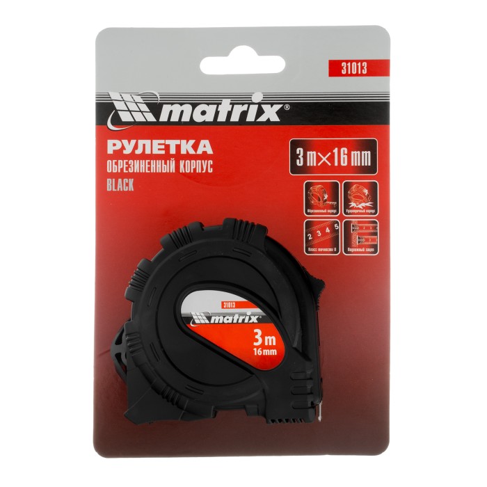 Рулетка Black,3 м х 16 мм,обрезиненный корпус Matrix