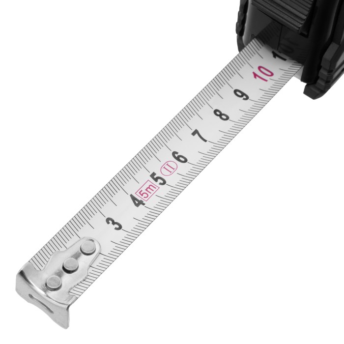 Рулетка Matrix Black 31014 с измерительным полотном длиной 5 м и шириной 19 мм, в обрезиненном корпусе, будет полезна как строителю, так и домашнему мастеру. Используется для определения размеров и расстояний, имеет цену деления 1 мм и класс точности 2. Корпус инструмента защищен резиновым кожухом, что уменьшает риск поломки в результате случайного падения или удара. Зацеп надежно закреплен на ленте тремя заклепками, поэтому он не отвалится даже после длительного использования.ПреимуществаУстойчивость к повреждениям — корпус изготовлен из ударопрочного ABS-пластика.Долговечность — полимерное покрытие защищает стальную ленту от царапин и истирания.Комфортная работа — измерительное полотно фиксируется в вытянутом положении при помощи стопора.Дополнительные возможности — инструмент можно закрепить на поясе при помощи металлической клипсы или повесить на запястье за ремешок.