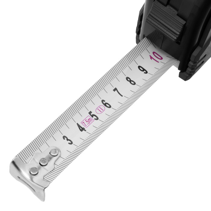 Рулетка Matrix Black 31015 с измерительным полотном длиной 7,5 м и шириной 25 мм, в обрезиненном корпусе, будет полезна как строителю, так и домашнему мастеру. Используется для определения размеров и расстояний, имеет цену деления 1 мм и класс точности 2. Корпус инструмента защищен резиновым кожухом, что уменьшает риск поломки в результате случайного падения или удара. Зацеп надежно закреплен на ленте тремя заклепками, поэтому он не отвалится даже после длительного использования.ПреимуществаУстойчивость к повреждениям — корпус изготовлен из ударопрочного ABS-пластика.Долговечность — полимерное покрытие защищает стальную ленту от царапин и истирания.Комфортная работа — измерительное полотно фиксируется в вытянутом положении при помощи стопора.Дополнительные возможности — инструмент можно закрепить на поясе при помощи металлической клипсы или повесить на запястье за ремешок.