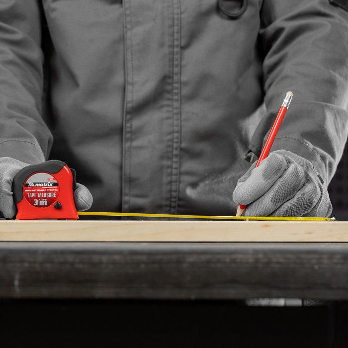 Рулетка Double fixation,3 м х 16 мм,обрезиненный корпус,двойная плавная фиксация Matrix