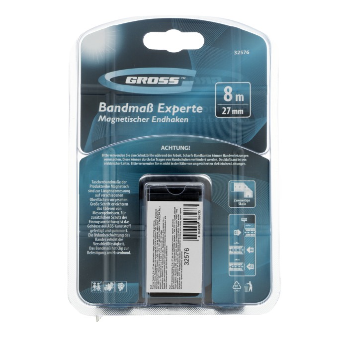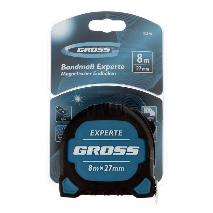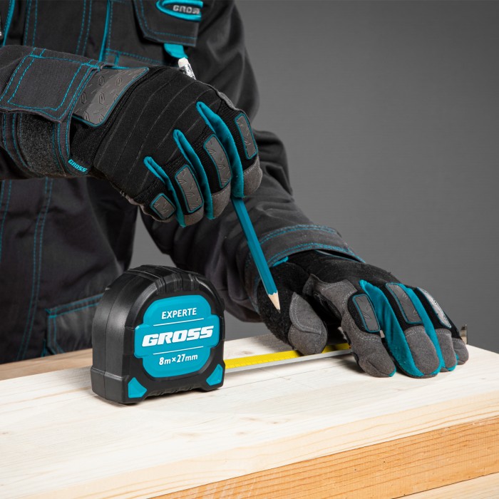 Рулетка Experte,8 м x 27 мм,двухкомпонентный корпус,магнит,двухсторонняя разметка,нейлон Gross