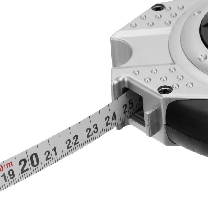Геодезическая рулетка Gross Rollmassband 31250 в закрытом корпусе, с металлической лентой длиной 10 м и шириной 13 мм, с нейлоновым покрытием, используется для определения расстояний и размеров различных объектов. Комбин...