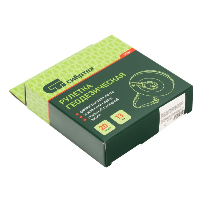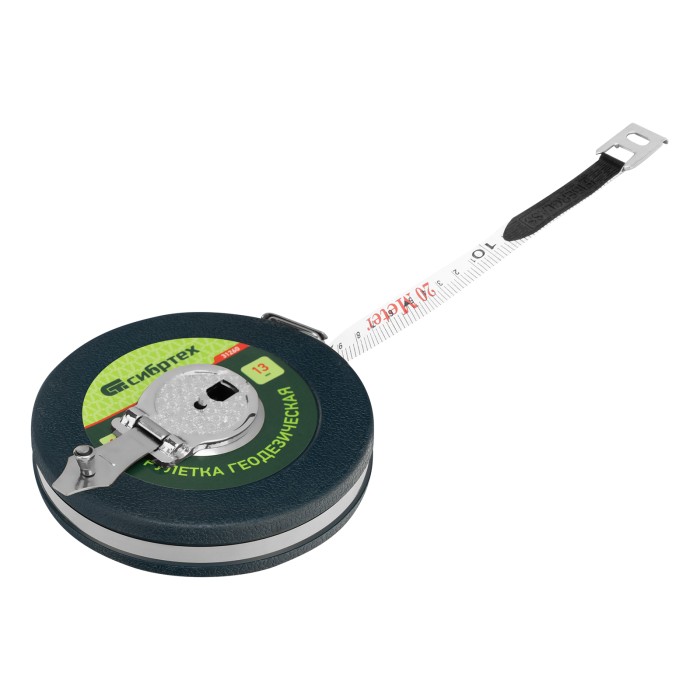 Геодезическая рулетка Сибртех 31261 с измерительным полотном длиной 20 м и шириной 13 мм, в закрытом корпусе, с фибергласовой лентой, — измерительный инструмент для определения расстояний и проведения замеров различных о...