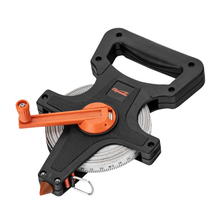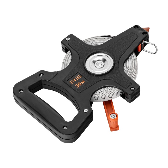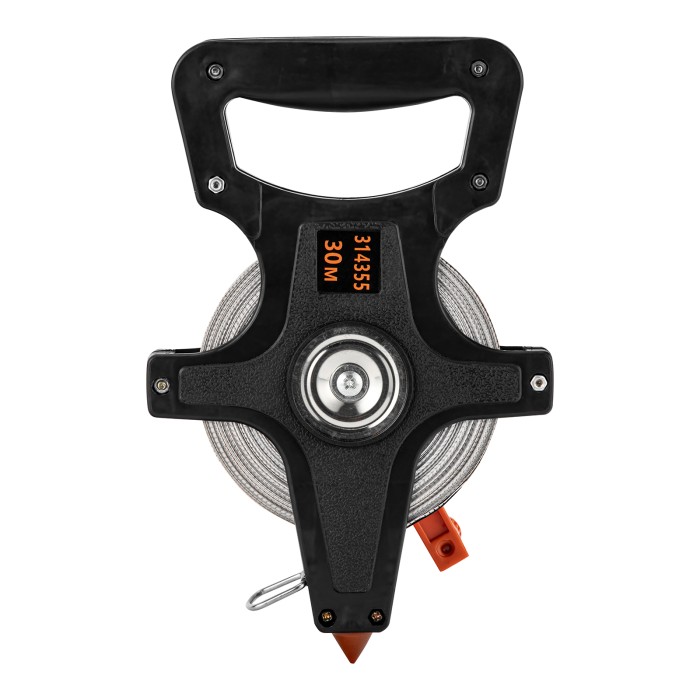 Геодезическая рулетка Sparta 314355 в открытом корпусе, 30 м х 12,5 мм, с лентой из ПВХ, — измерительный инструмент для определения расстояний и размеров объектов до 30 м. Заостренный наконечник для фиксации в почве и кольцо-зацеп позволяют выполнять длинномерные измерения в одиночку. Рулетка используется во время строительства, геодезических обследований, инвентаризации земельных участков, формирования ландшафтного дизайна.ПреимуществаИзмерительное полотно не подвержено коррозии и удобно при замерах рельефных поверхностей, т.к. выполнено из ПВХ-материала.Рулетка позволяет быстро смотать ленту благодаря удобной удлиненной ручке возвратного механизма.Инструмент комфортно держать в руке, поскольку он снабжен специальной рукояткой.