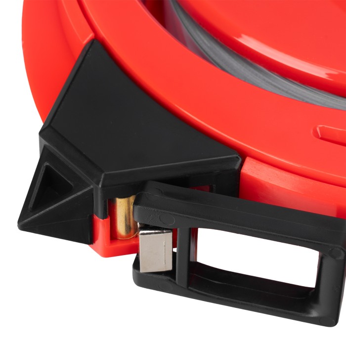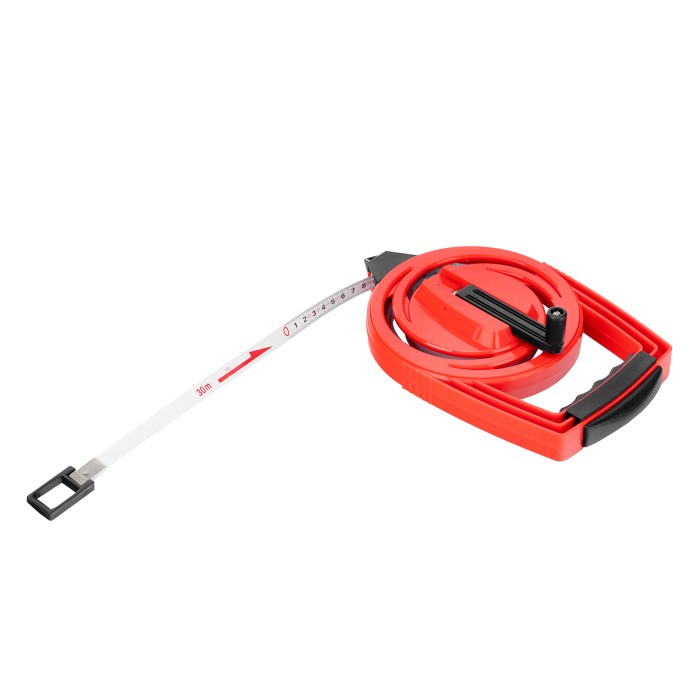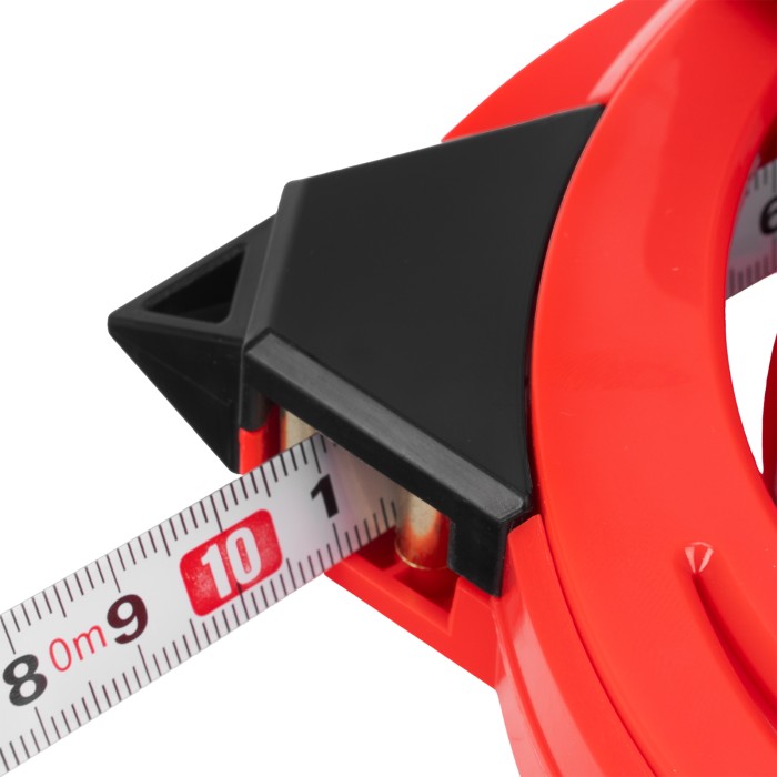 Геодезическая рулетка Matrix 31224 в закрытом корпусе, с металлической лентой размером 30 м х 12,5 мм, применяется для определения расстояний и размеров крупных объектов. Закрытый корпус из ABS-пластика защищает механизм от повреждений. Двухкомпонентная ручка-держатель обеспечивает надежный захват и облегчает работу с рулеткой. Инструмент используется для проведения замеров на открытой местности, дорогах, а также для выполнения ландшафтных работ и картографических обследований.ПреимуществаДолговечность — стальная лента не растягивается в отличие от фибергласовых аналогов.Удобное проведение длинномерных измерений — наконечник в нижней части надежно фиксирует рулетку в почве.Возможность работы в одиночку — кольцо-зацеп надежно фиксируется на объекте, избавляя от необходимости удерживать конец измерительной ленты рукой.Быстрый возврат измерительного полотна — катушечная ручка позволяет быстро смотать ленту.