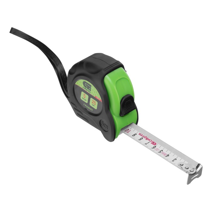 Рулетка Сибртех Графит 32532 с полотном размером 5 м х 25 мм, в обрезиненном корпусе с амортизатором, позволяет быстро измерить длину помещения, заготовок, конструкций и других объектов. Пригодится опытному или начинающе...
