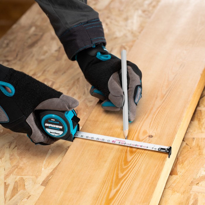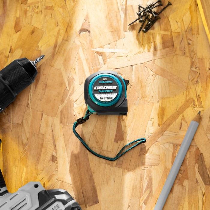 Рулетка Gross «Komfortabel» 32560 в обрезиненном корпусе с лентой 3 м х 19 мм — это удобный карманный инструмент, необходимый при проведении ремонтных и строительных работ. С ее помощью можно провести линейные измерения ровных поверхностей, различных заготовок, материалов, конструкций и т.д.ПреимуществаЗащита от ударного воздействия — корпус рулетки имеет обрезиненный чехол.Высокая точность измерений — благодаря подвижному зацепу компенсируется погрешность от его толщины.Легкое считывание результатов — измерительная шкала с матовым антибликовым покрытием нанесена крупными цифрами.Ремешок и прижимная клипса — рулетку можно зафиксировать на запястье или на ремне для комфортной работы и транспортировки.