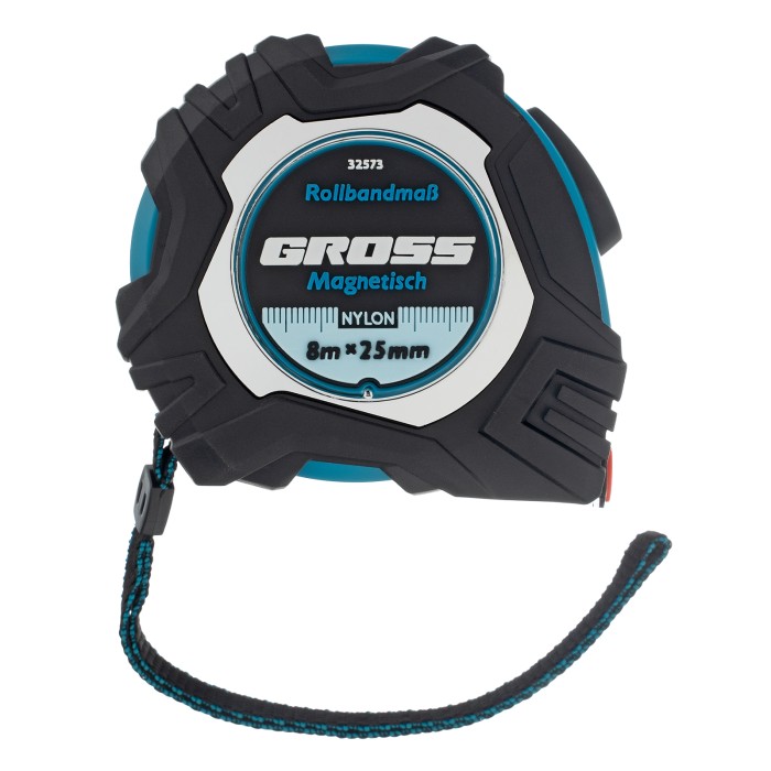 Рулетка Gross «Magnetisch» 32573 в обрезиненном корпусе, с полотном размером 8 м х 25 мм, магнитным зацепом, нейлоновым покрытием и функцией автоматической фиксации, используется во время ремонтных и строительных работ. ...