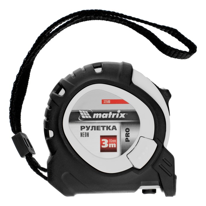 Рулетка Neon,3 м x 16 мм,обрезиненный корпус,3 фиксации,Pro Matrix