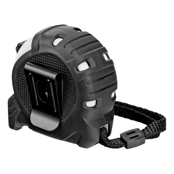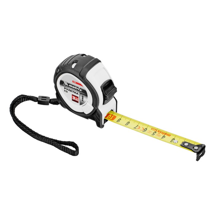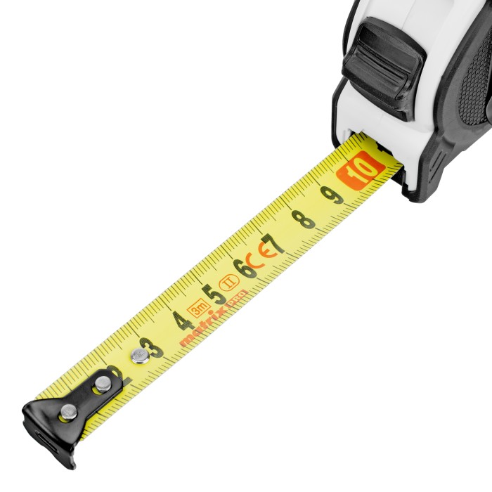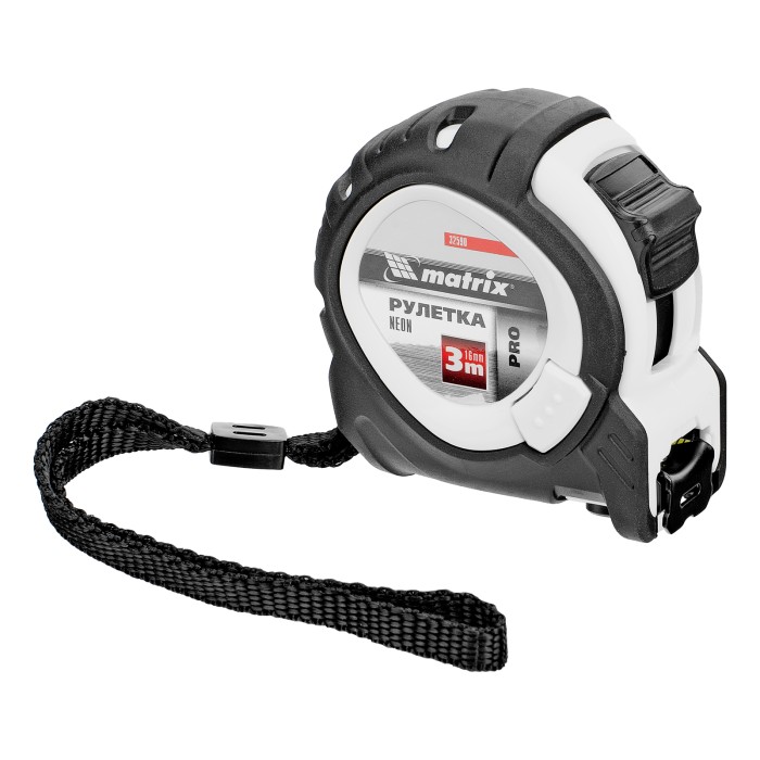 Рулетка Matrix PRO Neon 32590 в обрезиненном корпусе, с 3 механизмами фиксации ленты длиной 3 м и шириной 16 мм, служит для определения расстояний и размеров различных предметов. Крупные цифры на матовом желто-зеленом полотне хорошо видны, что облегчает считывание результатов. Измерительное полотно можно зафиксировать на нужной отметке при помощи стопора или одной из двух кнопок-пауз — это удобно при проведении большого количества замеров. Рулетка предназначена для выполнения профессиональных и бытовых измерительных работ.ПреимуществаУстойчивость к случайным повреждениям — корпус изготовлен из ударопрочного пластика и обрезинен.Выполнение измерений от ноля — подвижный зацеп обеспечивает точность полученных результатов.Удобная транспортировка — рулетку можно повесить на запястье за ремешок или закрепить на поясе при помощи металлического зажима на корпусе.