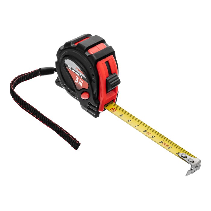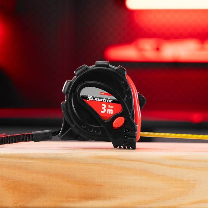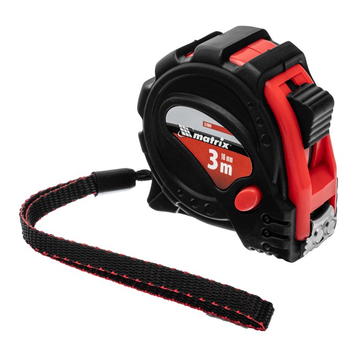 Рулетка Matrix Status magnet 3 fixations 31004 с полотном длиной 3 м и шириной 16 мм, в обрезиненном корпусе, оснащенная зацепом с магнитом, предназначена для измерения различных объектов и расстояний. Имеет класс точности 2 и цену деления 1 мм, что обеспечивает достаточную результативность замеров. Магнитный зацеп позволяет четко фиксировать измерительное полотно на металлических предметах. Функция «true zero» повышает точность расчетов, поскольку нивелирует погрешность в виде толщины самого зацепа. Рулетка будет полезна во время проведения строительных работ, а также пригодится в быту.ПреимуществаНадежность — корпус из высокопрочного ABS-пластика обрезинен, что снижает риск поломки инструмента в случае падений или ударов, зацеп закреплен на ленте 2 заклепками и не отвалится во время работы.Удобное проведение измерений — лента может фиксироваться на нужной длине при помощи 3 независимых механизмов, крупные цифры упрощают считывание результатов.Дополнительные возможности — шнурок для крепления на запястье уменьшает риск падения рулетки, на боковой поверхности имеется зажим для фиксации рулетки на поясном ремне.