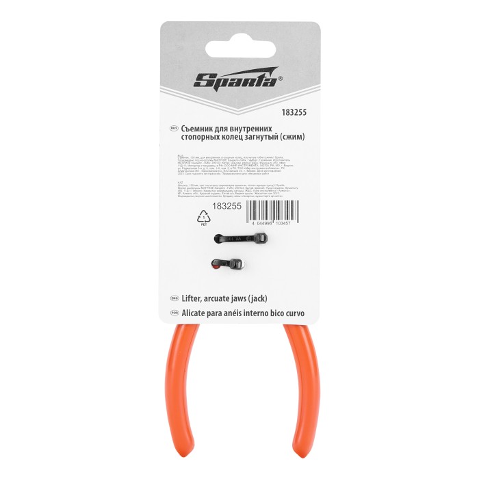 Съемник Sparta 183255 длиной 150 мм с изогнутыми губками используется для сжима внутренних стопорных колец с целью их монтажа и демонтажа. Благодаря особой форме наконечников ушки кольца не соскальзывают с них. Съемник стопорных колец используется для ремонта автомобилей, велосипедов, бытовой техники.ПреимуществаПрочность и долговечность — съемник из углеродистой стали выдерживает многократное использование.Удобная работа в труднодоступных местах — инструмент имеет изогнутые губки.Устойчивость к высоким нагрузкам — наконечники закалены до необходимой твердости.Комфортная работа — обливные рукоятки удобно ложатся в руку.