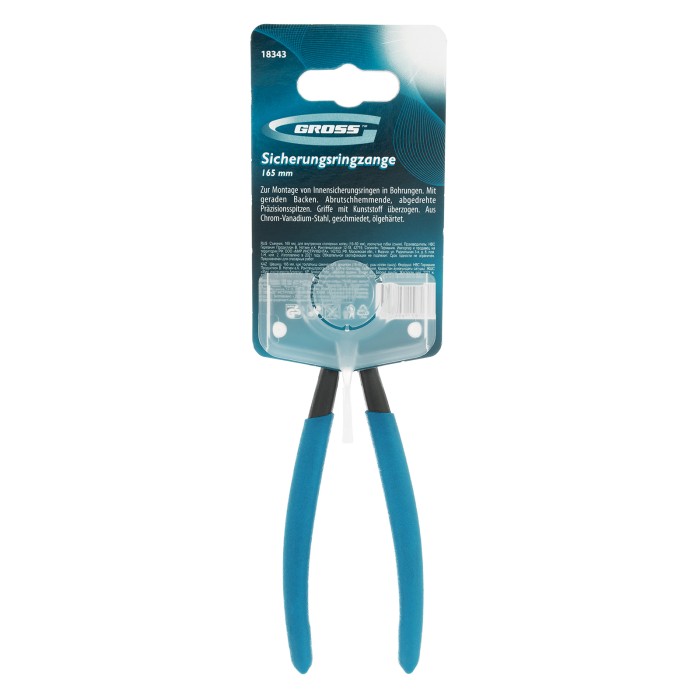 Съемник Gross 18343 длиной 165 мм с изогнутыми губками с прямыми губками работает на сжим и используется для монтажа и демонтажа внутренних стопорных колец диаметром 19-60 мм, размер отверстий которых соответствует диаметру наконечников — 1,8 мм. Изогнутые губки удобны для работы в труднодоступных местах. Инструмент пригодится для ремонта автомобилей, мотоциклов, велосипедов, бытовой техники. ПреимуществаВысокий показатель прочности — рабочие части изготовлены из хромованадиевой стали.Защита от разрушения — на стальные части нанесено антикоррозийное покрытие Titan Finish.Эргономичность — обливные рукоятки удобно лежат в руке, обеспечивая надежный хват.Гарантия 5 лет — высокое качество инструмента подтверждено производителем.