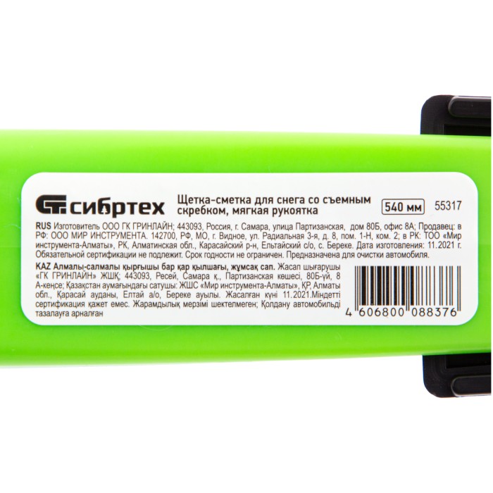 Щетка-сметка для снега со съемным скребком, мягкая рукоятка, 540 мм Сибртех
