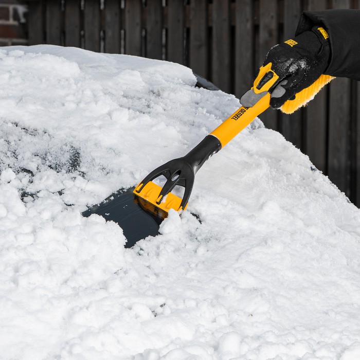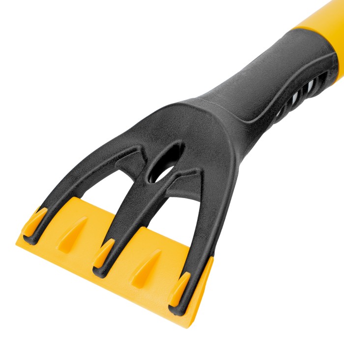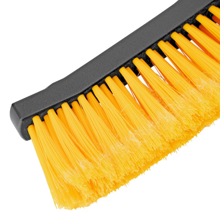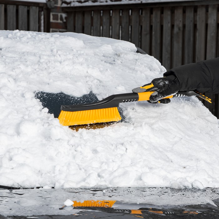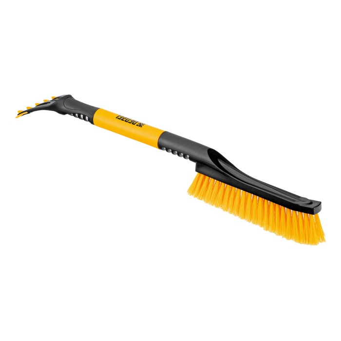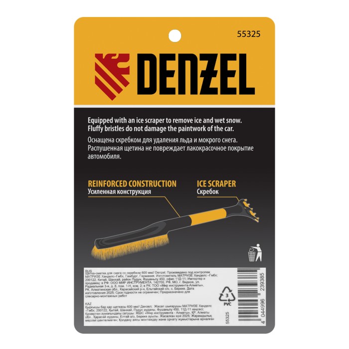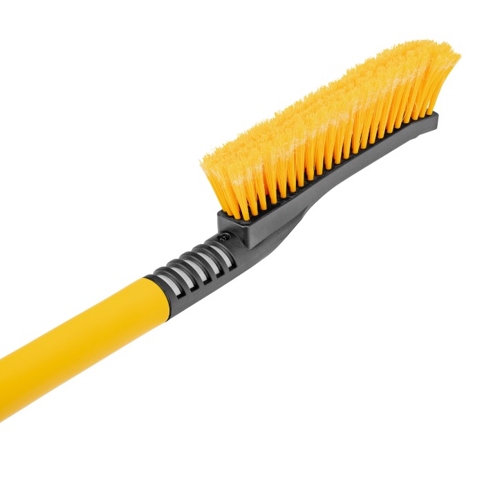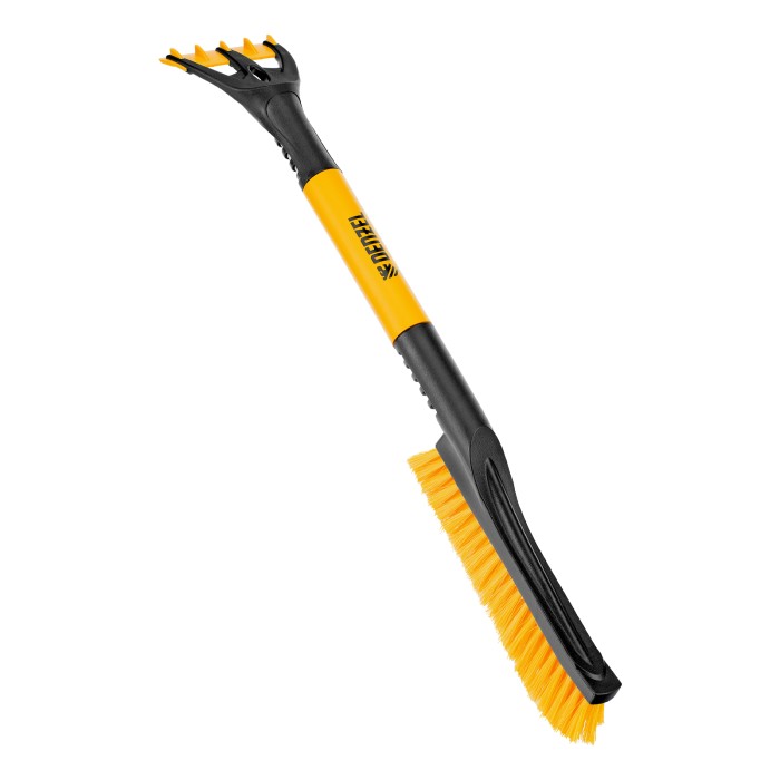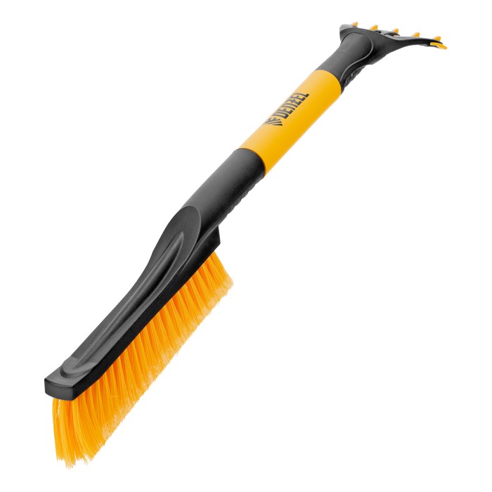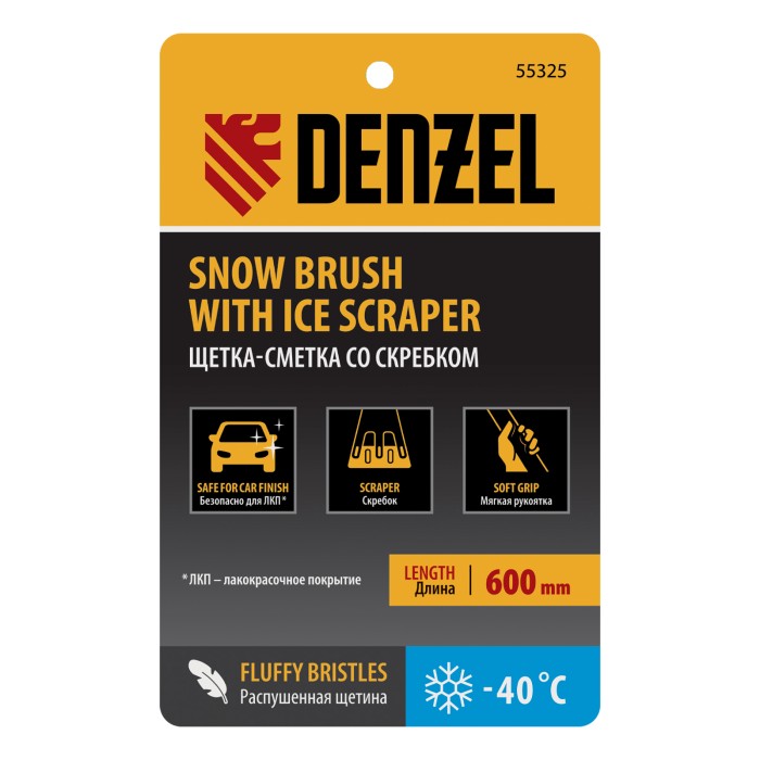 Щетка-сметка для снега со скребком Denzel 55325 длиной 60 см предназначена для быстрой и эффективной очистки кузова автомобиля от снега и наледи. Ее использование позволяет сохранить лакокрасочное покрытие автомобиля в хорошем состоянии, а также обеспечивает безопасность водителя и других участников дорожного движения.ПреимуществаДолговечность — щетка из морозоустойчивого пластика и алюминиевого сплава сохраняет рабочие свойства при температуре до -40 ℃.Бережная очистка — особо мягкая распушенная щетина шириной 24 см не повреждает лакокрасочное покрытие автомобиля.Эффективность — скребок шириной 10 см быстро очищает поверхности стекол и зеркал от толстой наледи благодаря специальным зубьям.Комфортная эксплуатация — благодаря мягкой неопреновой накладке на рукоятке щетку удобно держать в руке даже в сильные морозы.Небольшой вес 260 г — длительное использование щетки не вызывает чувство усталости.