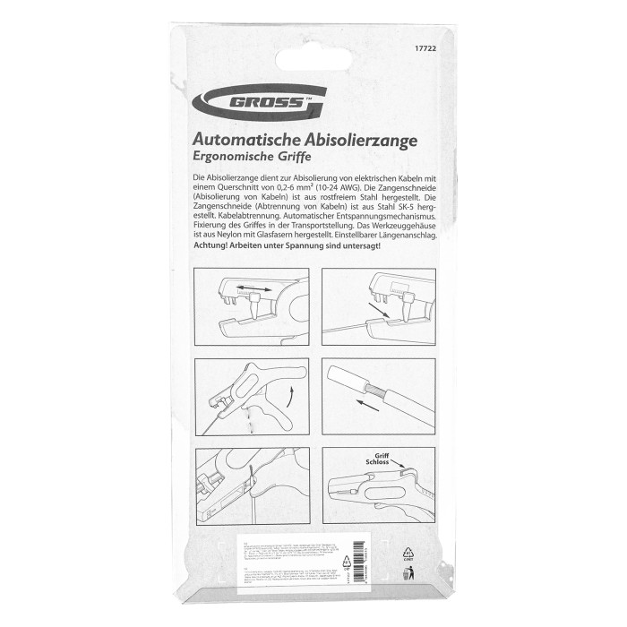 Щипцы для зачистки электропроводов 0.2-6 мм2 (10-24 AWG) лезвие: нержавеющая сталь Gross