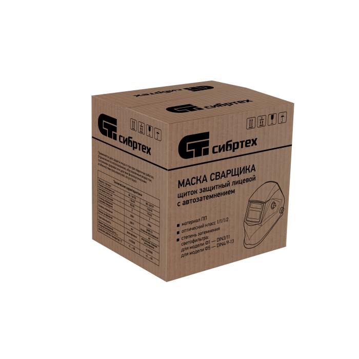 Защитный лицевой щиток, или маска сварщика, Сибртех Ф5 89177 с автозатемнением, упакованный в картонную коробку, закрывает глаза, лицо и шею мастера от света дуги, искр, ультрафиолета и горячих брызг. Предохраняет также ...