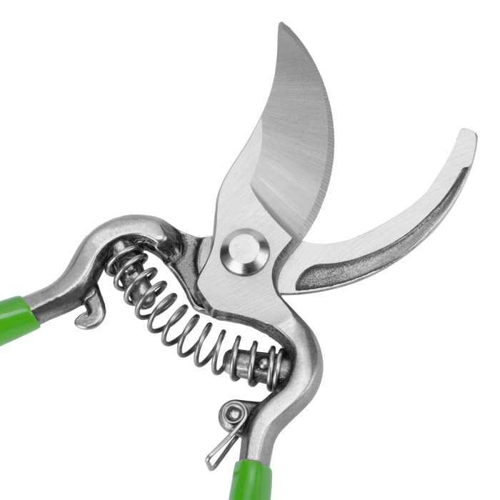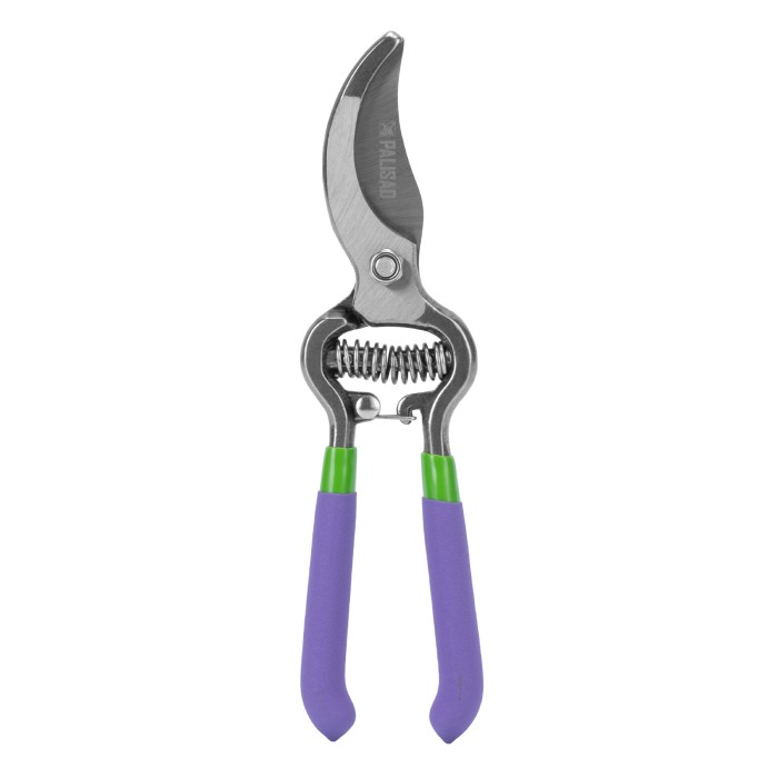 Секатор прямого реза Palisad 60561 общей длиной 200 мм, с обрезиненными рукоятками, используется для обрезки живых веток диаметром до 25 мм. Движущиеся в параллельных плоскостях лезвия производят гладкий и ровный срез, сводя к минимуму потерю сока растением. Регулировочный винт позволяет отрегулировать плотность смыкания лезвий. Секатор пригодится для работы на даче и в саду.ПреимуществаПрочность и износостойкость — лезвия изготовлены из высокоуглеродистой стали, прошедшей индукционную закалку.Высокий ресурс — рабочая кромка с прецизионной заточкой долго сохраняет режущую способность.Защита от разрушения — на лезвия нанесено антикоррозионное масляное покрытие.Надежная конструкция — рукоятки из кованой стали выдерживают высокие нагрузки.Комфорт во время длительной работы — благодаря ПВХ-покрытию рукоятки не выскальзывают из ладони.Безопасное хранение и транспортировка — надежный фиксатор не дает лезвиям самопроизвольно разойтись.