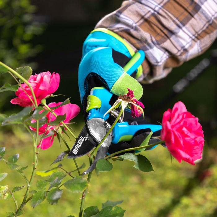 Секатор прямого реза Palisad LUXE 60483 длиной 205 мм, с двухкомпонентными рукоятками, — инструмент для срезания живых веток диаметром до 18 мм. Режущее лезвие с тефлоновым покрытием движется в параллельной плоскости с опорным лезвием, поэтому рез получается гладким и аккуратным, а растение получает минимальные повреждения. Материал рабочих частей — прочная среднеуглеродистая сталь, поэтому инструмент выдерживает длительное использование. Двухкомпонентные рукоятки из полиамида устойчивы к воздействию ультрафиолета, что увеличивает срок службы секатора. Инструмент облегчает уход за растениями на даче и в саду. ПреимуществаИзносостойкость — режущая кромка прошла индукционную закалку и имеет прецизионную заточку, поэтому долго сохраняет рабочие свойства.Неизменно высокое качество реза — плотность смыкания лезвий регулируется винтом.Эффективная работа с твердыми и толстыми ветками — суставный механизм увеличивает усилие реза на 15%.Коррозионная стойкость — на лезвия нанесено защитное покрытие.Надежная конструкция — демпфер между рукоятками предотвращает поломку инструмента.Комфортная работа — на верхней рукоятке имеется вставка из термопластичной резины, а на нижней — выемка для пальца.Безопасное хранение и транспортировка — фиксатор лезвий не позволяет им раскрыться.