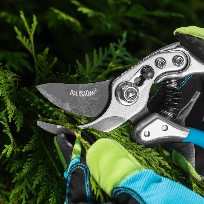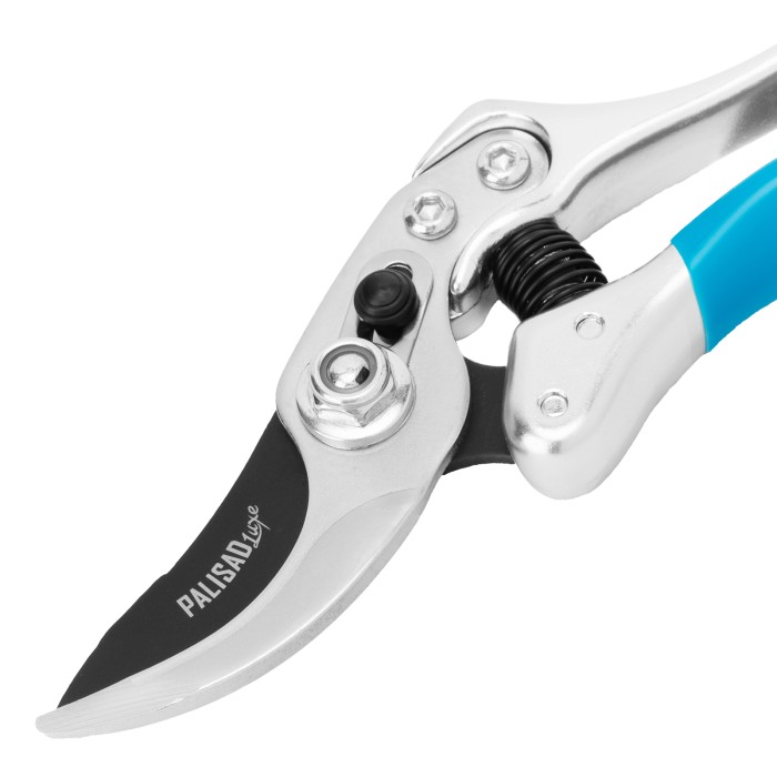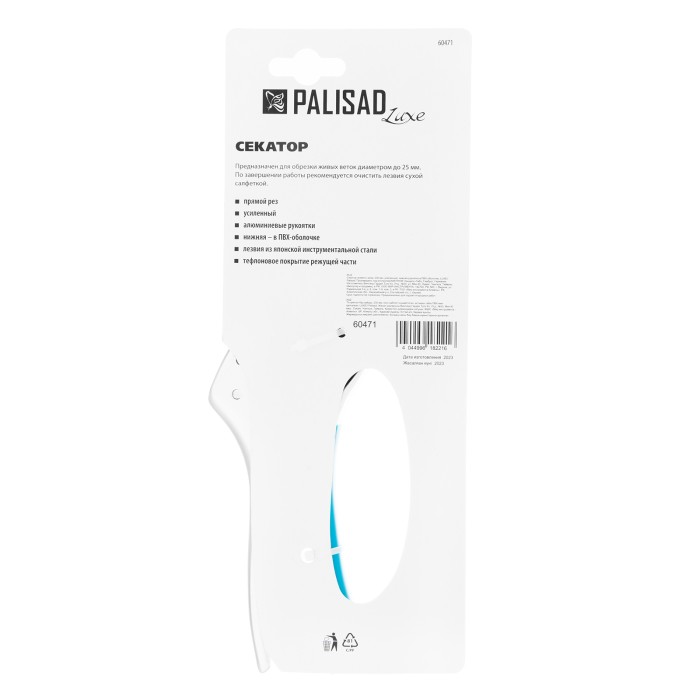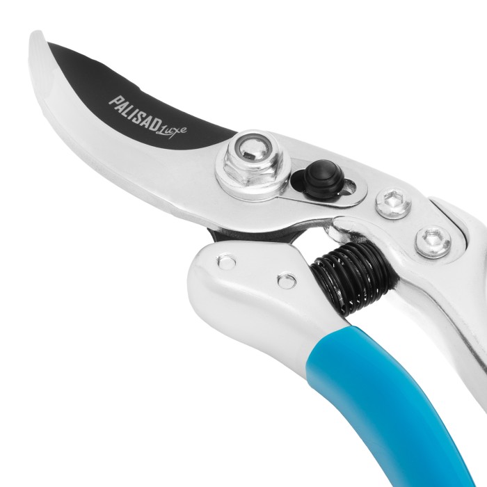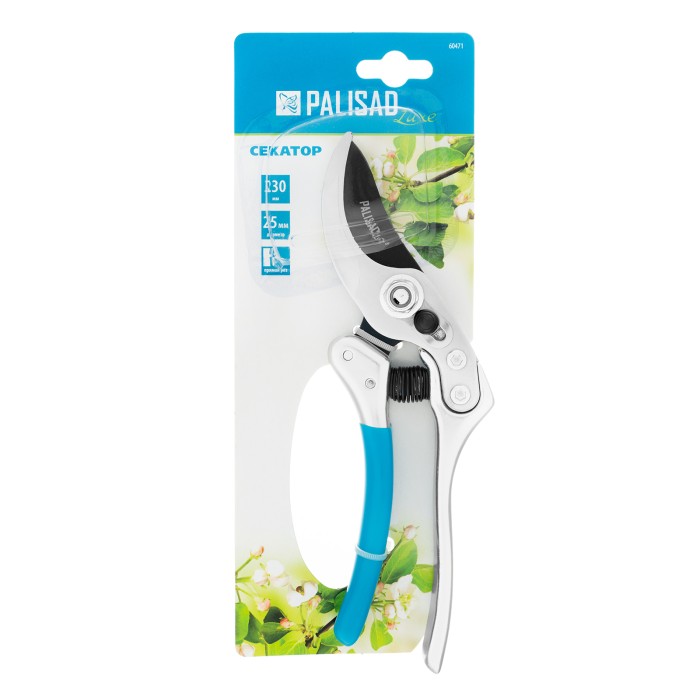 Усиленный секатор прямого реза Palisad LUXE 60471 длиной 230 мм, с нижней рукояткой в ПВХ-оболочке, — инструмент, позволяющий срезать живые ветки толщиной до 25 мм. Срез получается чистым и ровным, поскольку лезвия движутся в параллельных плоскостях. Вред для растения при обрезке минимален. Секатор легко справляется с толстыми ветками благодаря тефлоновому покрытию режущего лезвия и увеличенному шарниру, усиливающему сжатие на 10%. Посредством винта можно регулировать плотность примыкания лезвий. Инструмент будет полезен на дачном участке.ПреимуществаМаксимальная прочность и долговечность — лезвия изготовлены из высококачественной японской инструментальной стали SK-5. Высокий ресурс работоспособности — режущее лезвие прошло индукционную закалку и имеет кромку с прецизионной заточкой.Защита от коррозии — на режущем лезвии имеется тефлоновое покрытие, а на опорном — цинковое.Безопасное хранение и транспортировка — удобный фиксатор крепко удерживает лезвия сомкнутыми.Надежность — литые алюминиевые рукоятки выдерживают значительные нагрузки на изгиб и излом.Комфортное использование — нижняя рукоятка имеет ПВХ-покрытие и не скользит в руке.