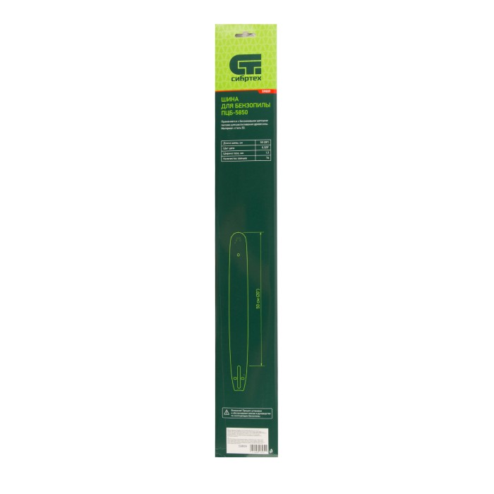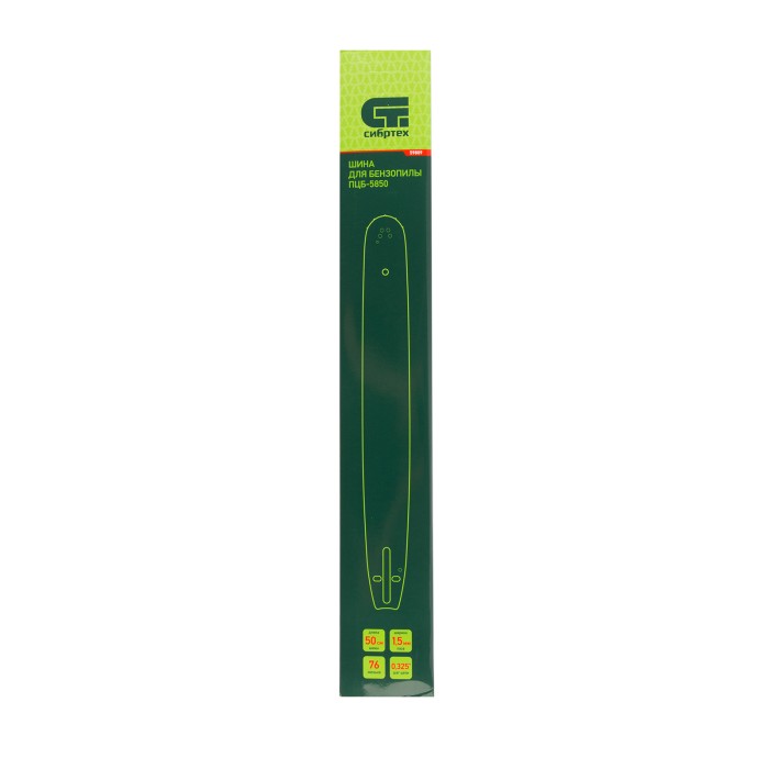 Шина Сибртех 59809 длиной 50 см (20″), с шириной паза 1,5 мм, предназначена для установки цепи с 76 звеньями и шагом 0,325″ и совместима с цепной бензиновой пилой Сибртех ПЦБ-5850. Вместе с цепью позволяет формировать аккуратные надпилы и срезы. Пила с установленной шиной может использоваться для полупрофессиональных целей: валки деревьев, частного строительства, заготовки большого количества дров, срезания толстых веток в саду.ПреимуществаНадежность — шина изготовлена из высокопрочной конструкционной стали 50, порошковое покрытие предотвращает образование коррозии.Эффективная работа даже при высоких нагрузках — ведущая звездочка, отвечающая за передачу крутящего момента цепи, отличается высокой прочностью.Высокий ресурс — система автоматического смазывания обеспечивает своевременное поступление масла к цепи и его равномерное распределение, уменьшая износ пильной гарнитуры.Комфортная эксплуатация — шина минимизирует вибрации от работающего инструмента.
