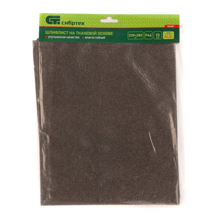 Шлифлист на тканевой основе Сибртех Р 46 арт. 756357 размером 230 х 280 мм подходит для ручной и машинной шлифовки поверхностей. Он позволяет работать с материалами из дерева, металла, пластмассы. Крупнозернистый абразив Р46 оптимален для черновой обработки поверхностей, эффективного удаления ржавчины, загрязнений, заусенцев, старых лакокрасочных покрытий.ПреимуществаЗерно из оксида алюминия отличается заостренной формой и твердостью, что позволяет увеличить скорость обработки поверхностей.Крупные зерна размером 315-400 мкм медленно забиваются отработанным материалом, за счет чего абразив дольше сохраняет эффективность.Шлифлист влагостойкий, поэтому его можно использовать для обработки сырой древесины.Основа из гибкой и прочной на разрыв ткани обеспечивает повышенную износостойкость шлифлиста и удобство в работе.В набор входит 10 шлифлистов, их хватит на долгое время.
