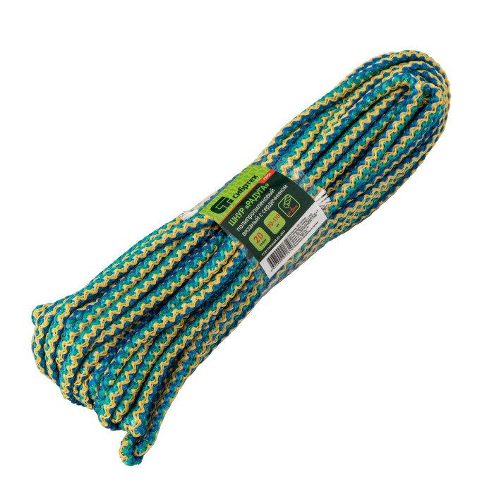 Шнур вязаный полипропиленовый с серд."Радуга", 6 мм, L 20 м, Сибртех
