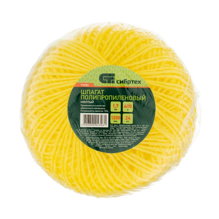 Шпагат полипропиленовый желтый, 1.7 мм, L400 м, Сибртех