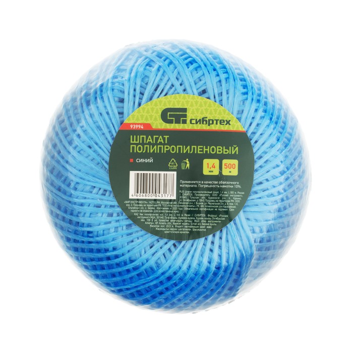 Шпагат полипропиленовый синий, 1.4 мм, L 500 м, Сибртех
